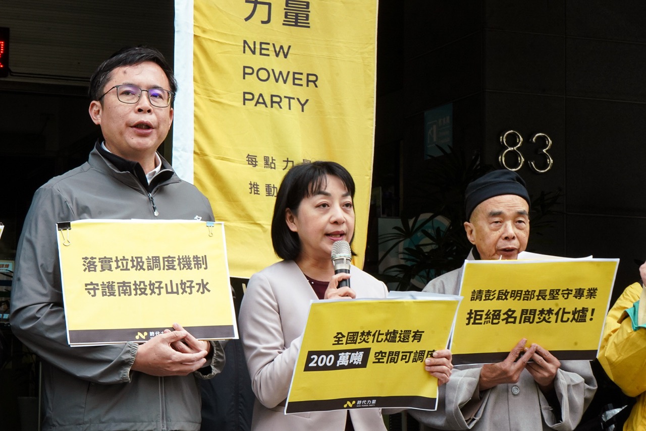 時代力量今(9)日偕同名間鄉反焚化爐自救會、名間鄉長陳翰立及多個民團召開記者會,揭露南投垃圾缺口僅 2 萬噸,縣府卻執意興建 16 萬噸巨型焚化爐,質疑其動機是否為大賺每年數億元的「事業廢棄物」財。隨行政院與農業部表態嚴審,時代力量與民團強調環境部彭啟明部長已成守護茶鄉最後守門人,並揭露南投縣府只要垃圾減量至少 10%, 配合調度即可解決問題,巨型焚化爐沒有必要性。