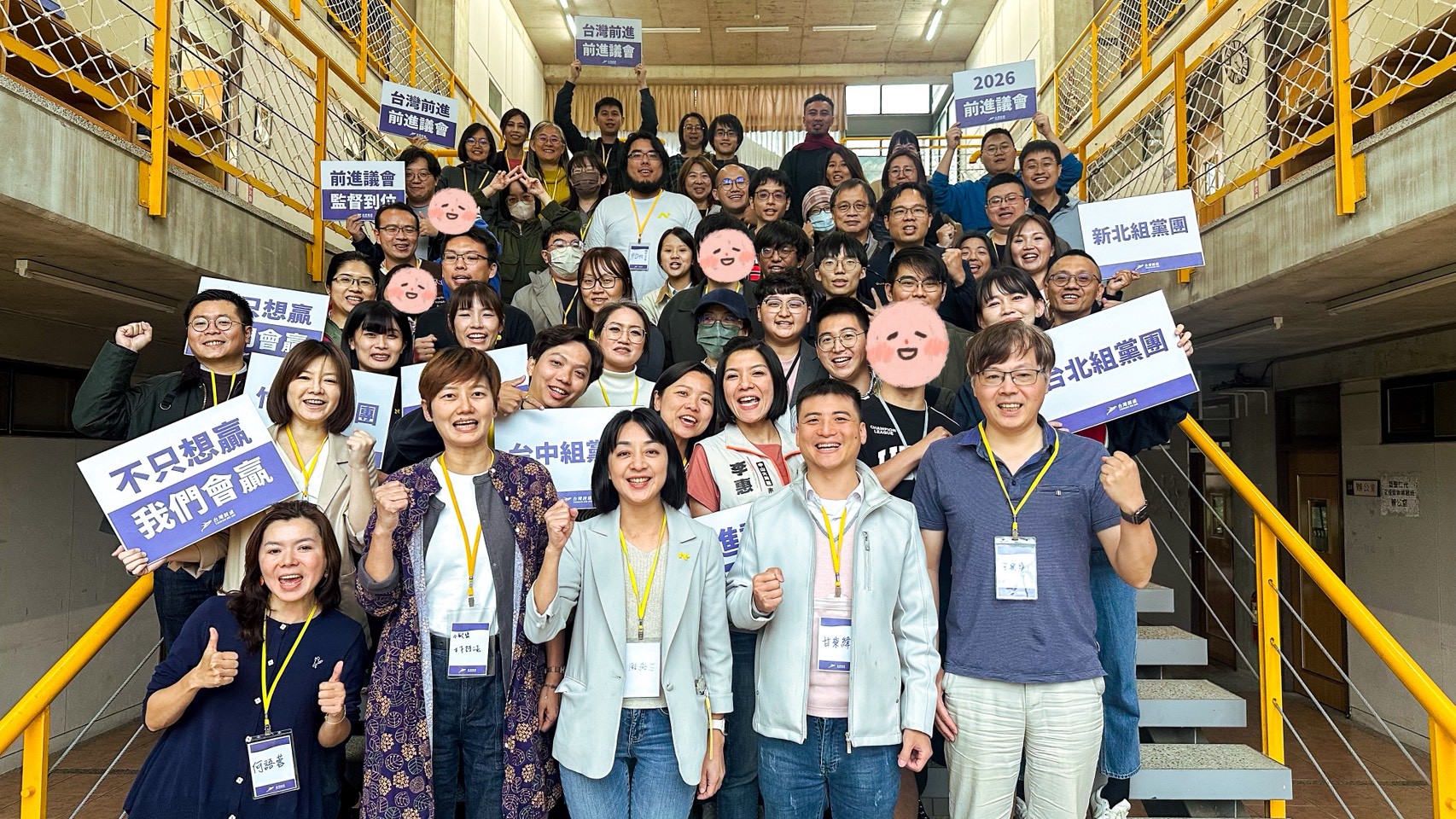 培訓營結束後,全體與會者共同合照,來自各黨各地的候選人齊聲呼喊:「2026,前進議會!前進議會,監督到位!台灣前進,前進議會!不只想贏,我們會贏!」展現堅定前行的決心。