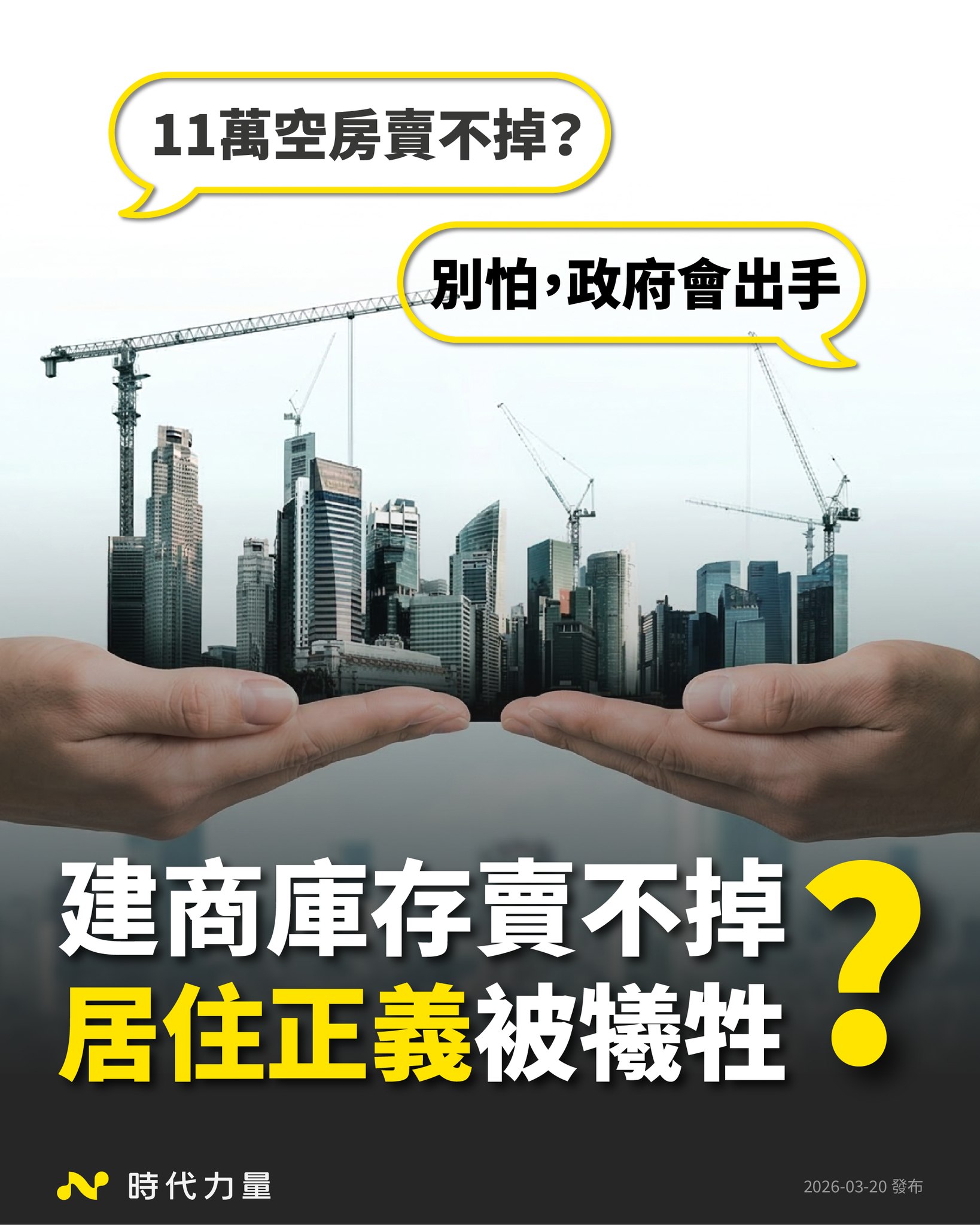 時代力量重申,支持協助真正有換屋需求的家庭,但解決空屋問題的方法,不是持續幫建商打開金融閘門,不是砍掉社宅,更不是讓年輕人永遠租不起、買不起。只有推動全面課徵空屋稅,才能讓房子真正流入租賃市場,成為有人居住的家。