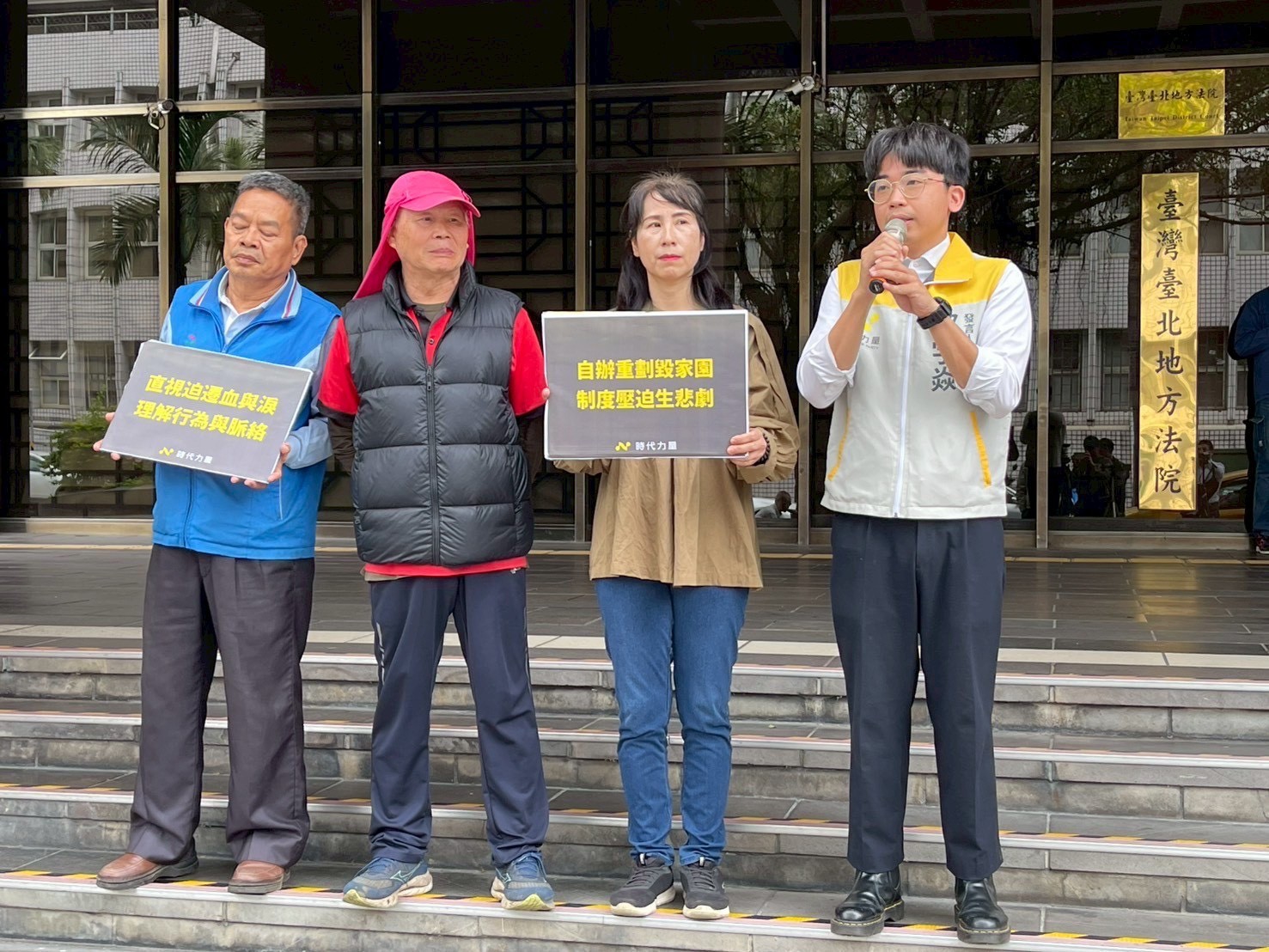 時代力量今與反迫遷團體在台北地方檢察署前召開記者會,指出本案不能被簡化為單一事件,而應回到「自辦市地重劃」制度長期造成的結構侵害人民權益的脈絡中理解,並呼籲司法偵辦過程應充分理解當事人處境,給予完整陳述遭遇與訴求的機會。