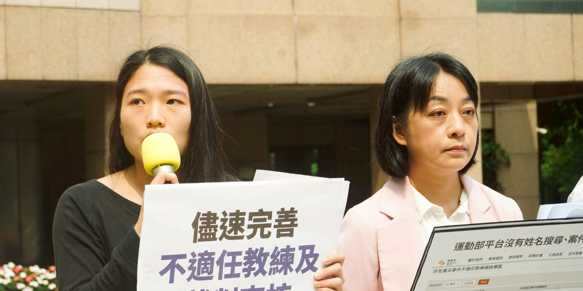 王婉諭也指出,運動部公布的「涉及違法事件不適任教練資訊專區」難以使用,無法搜尋姓名及案件摘要,時代力量已自建改版網站,呼籲運動部必須大改平台,讓家長一目了然。