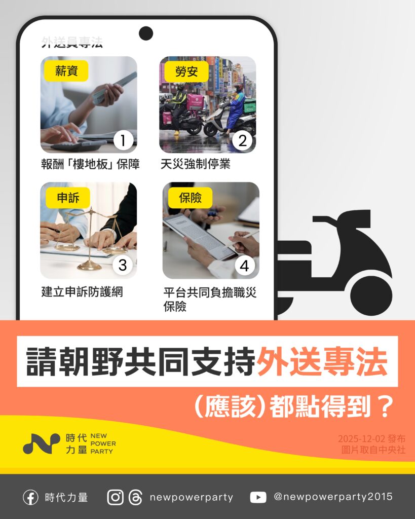 時代力量籲朝野加速審外送專法 務必本會期三讀保障外送員